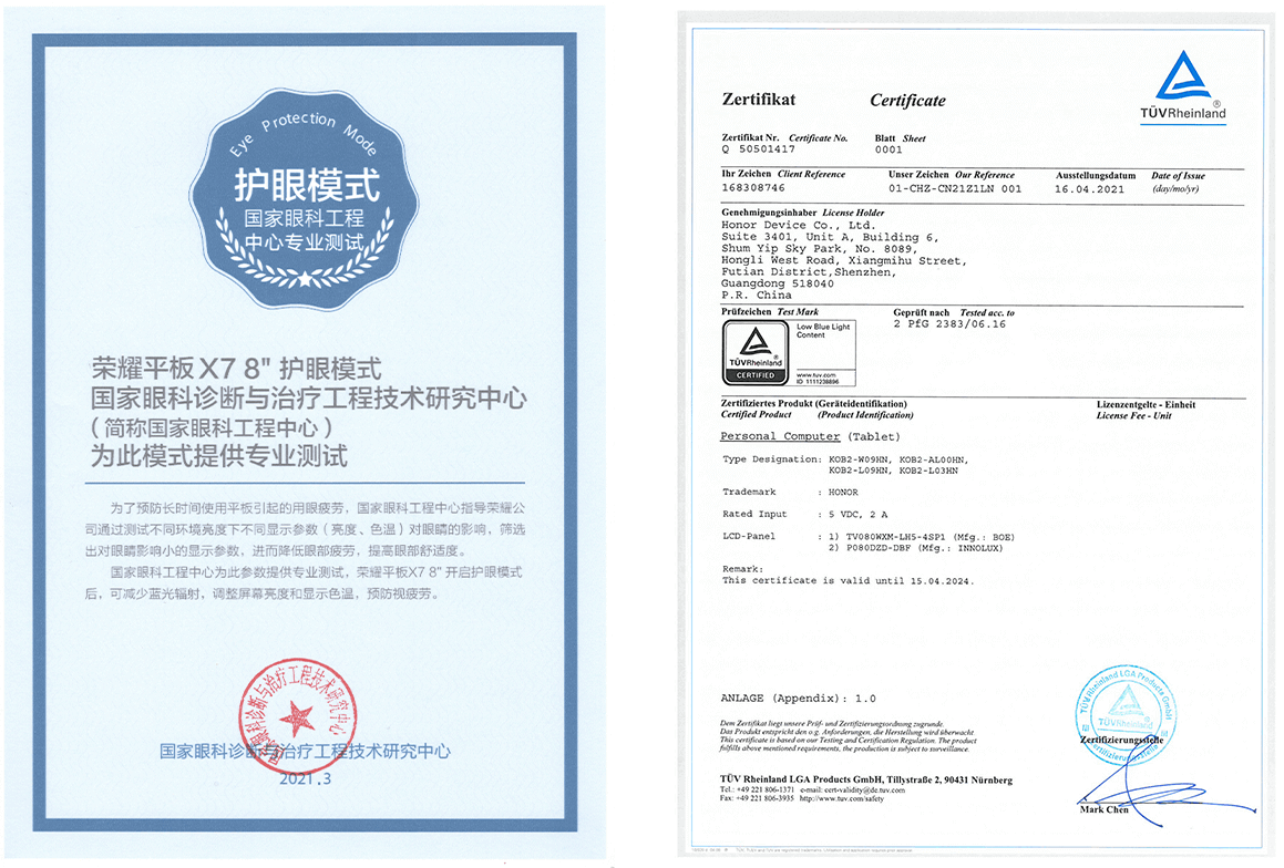 双重护眼认证