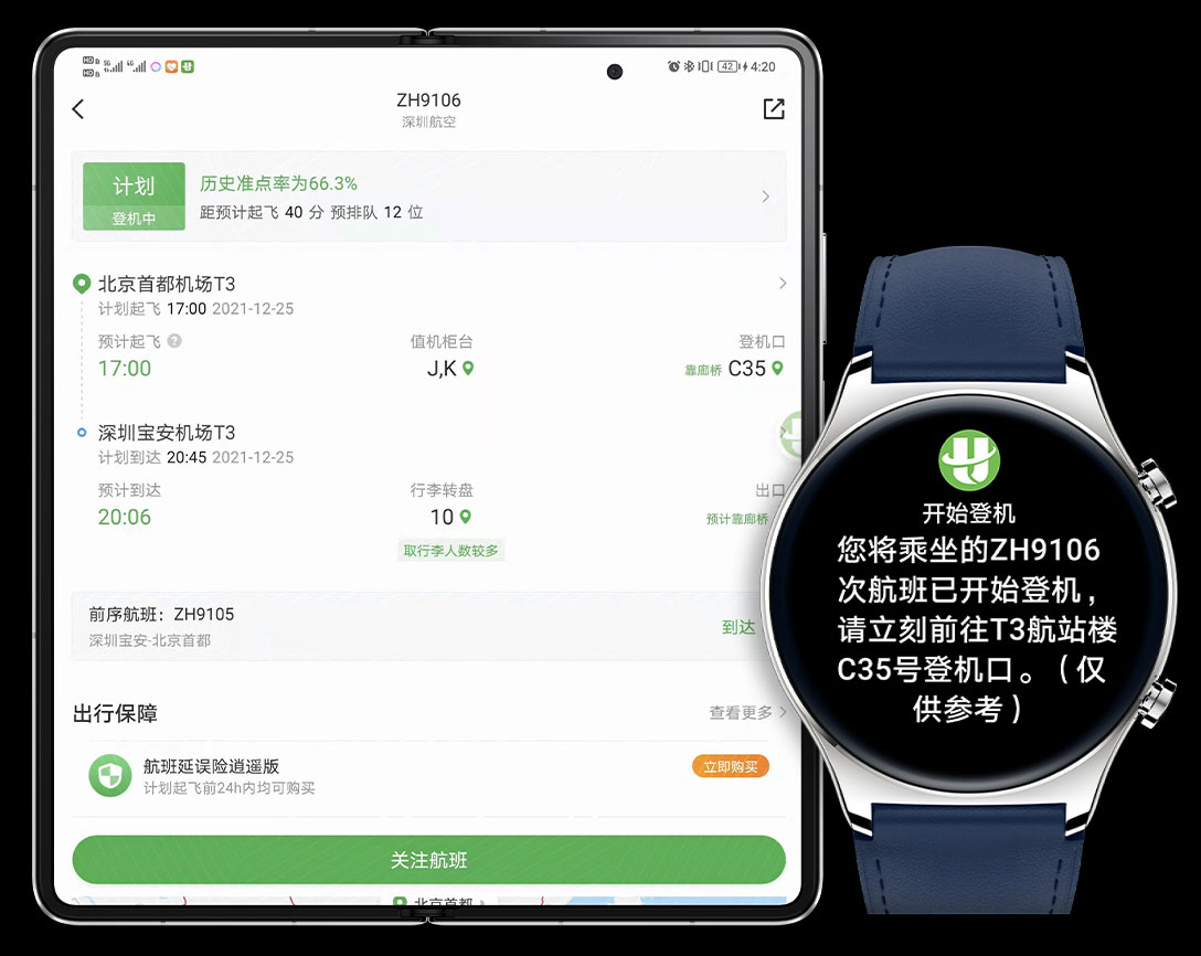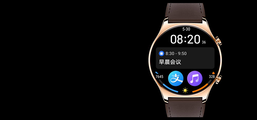 商务场景中的日程变更,会议提醒,航旅信息,今日事务等 都可同步到手表中,振动提醒,为你合理规划,让生活井然有序