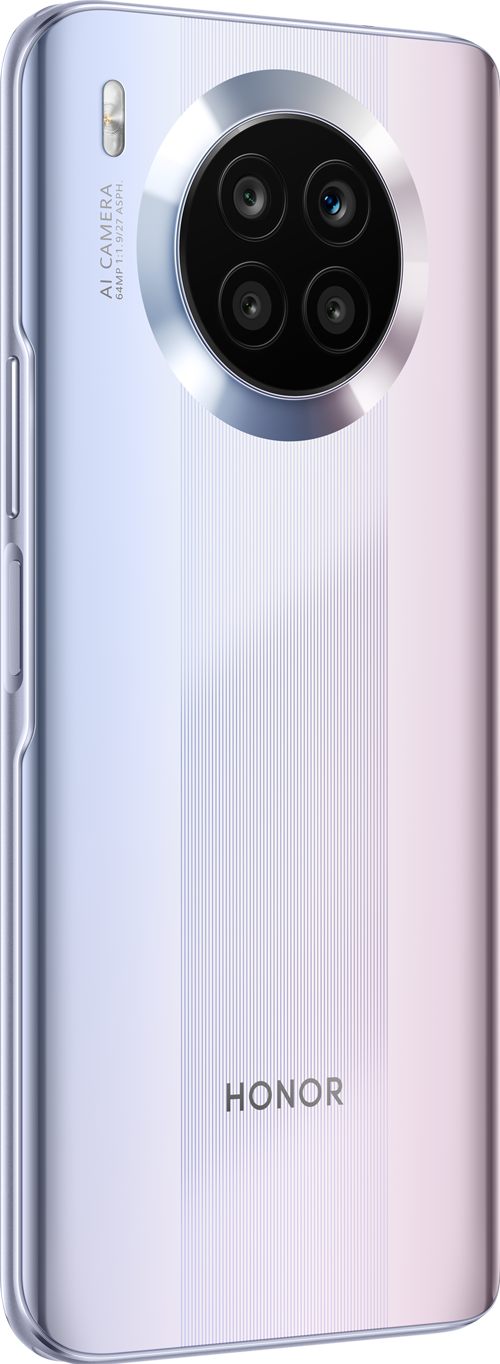El HONOR 50 Lite está disponible en Azul lumina, Plata sideral. El diseño permite que las luces se reflejen sobre las curvas icónicas mientras que el arco 3D ofrece un mejor agarre.