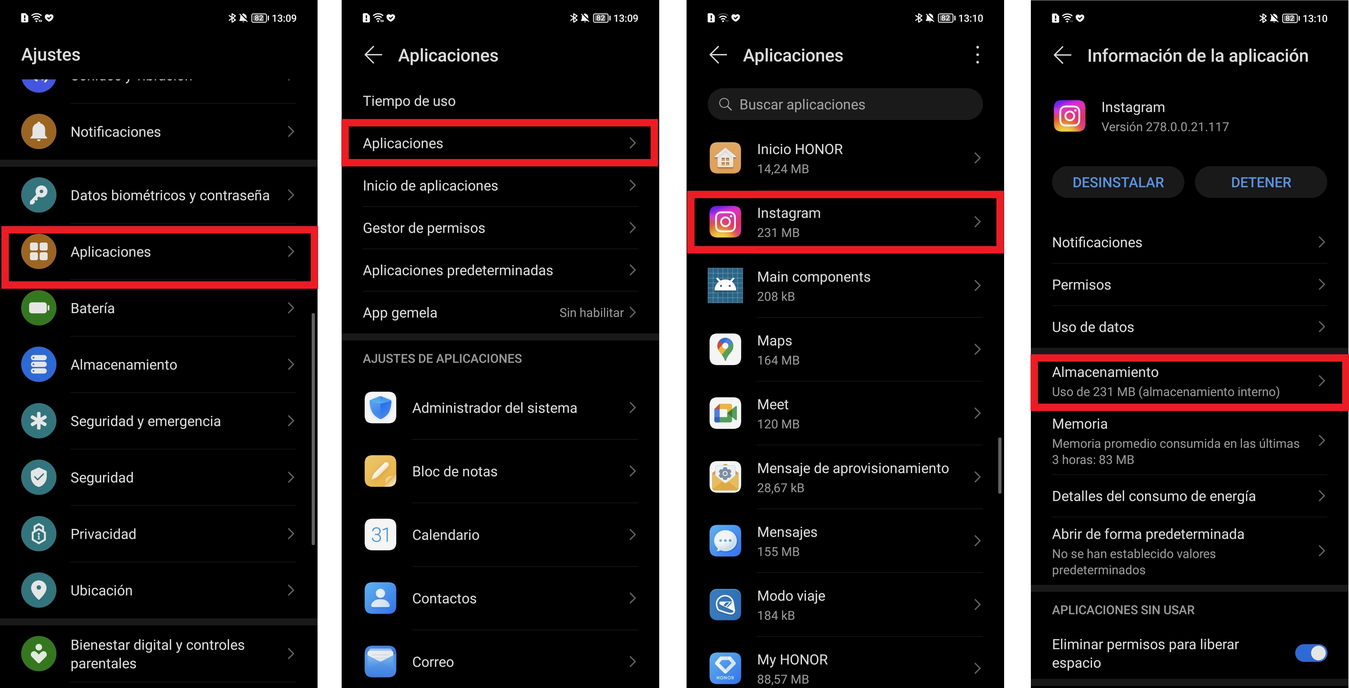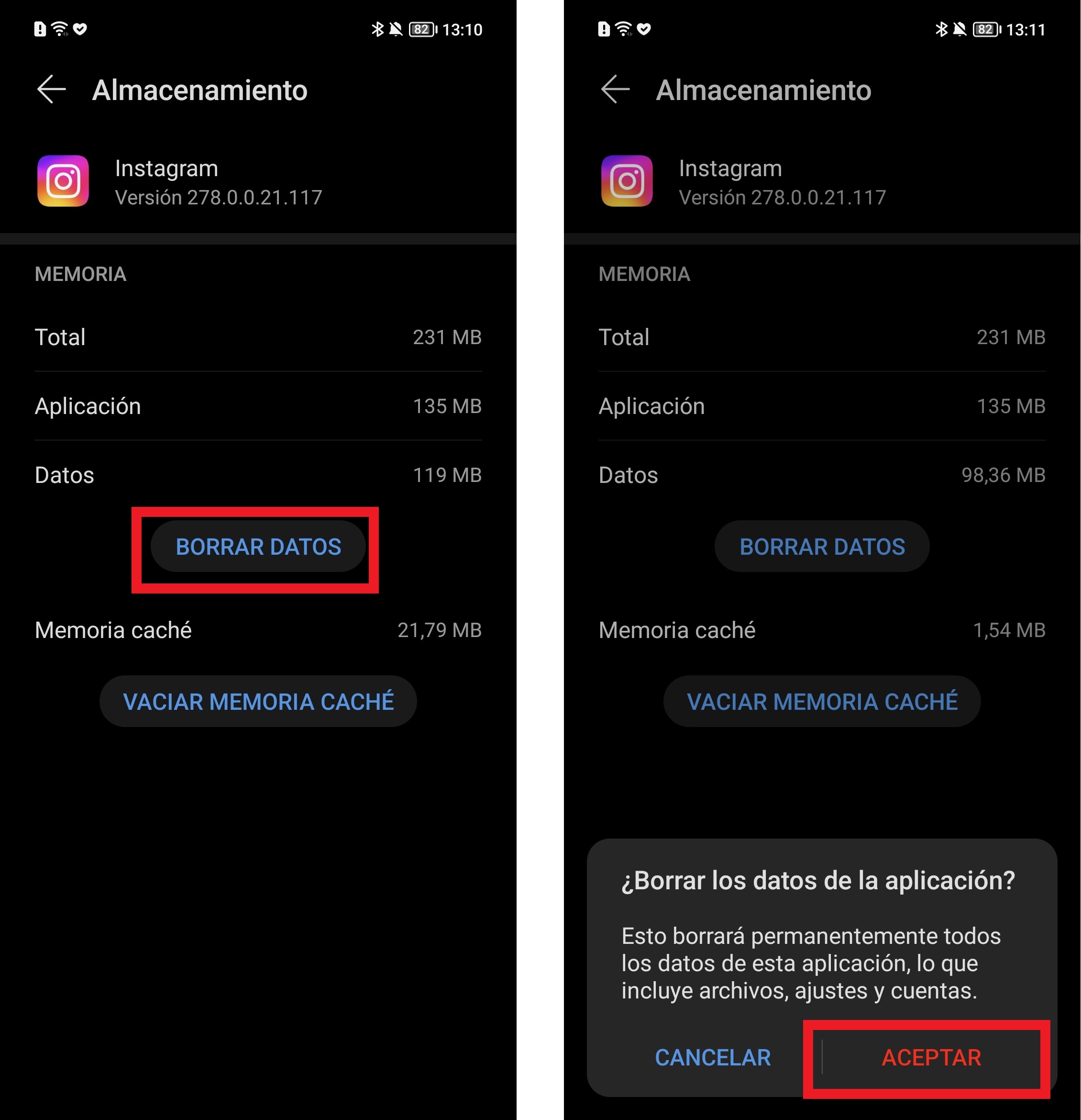 1. Para eliminar la caché o los datos de aplicaciones, se deben de seguir la siguiente ruta: Ajustes > Aplicaciones > Aplicaciones > Seleccionar la app deseada > Almacenamiento: