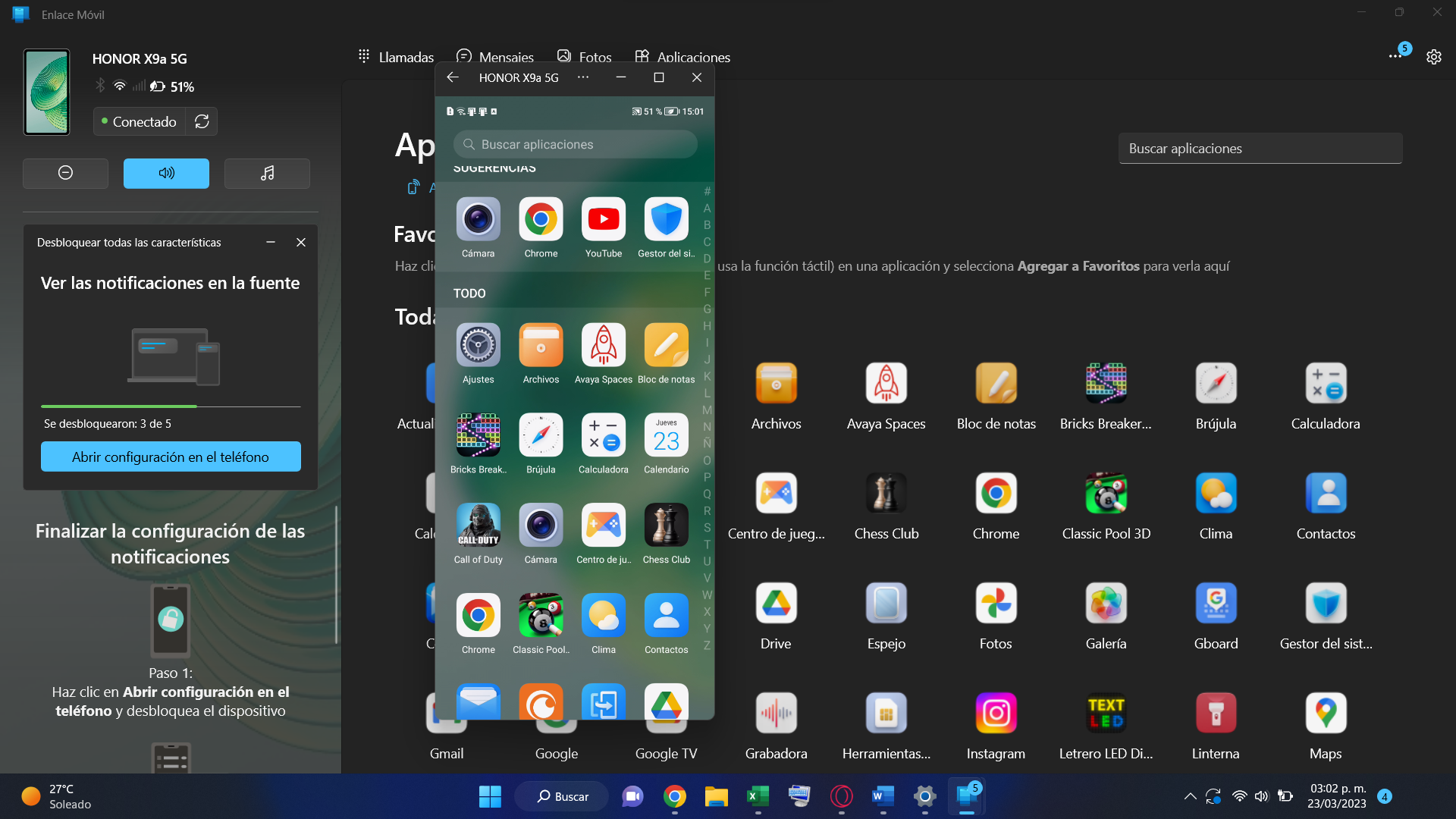 Ahora solo tienes que seleccionar la opción Abrir la pantalla del teléfono.