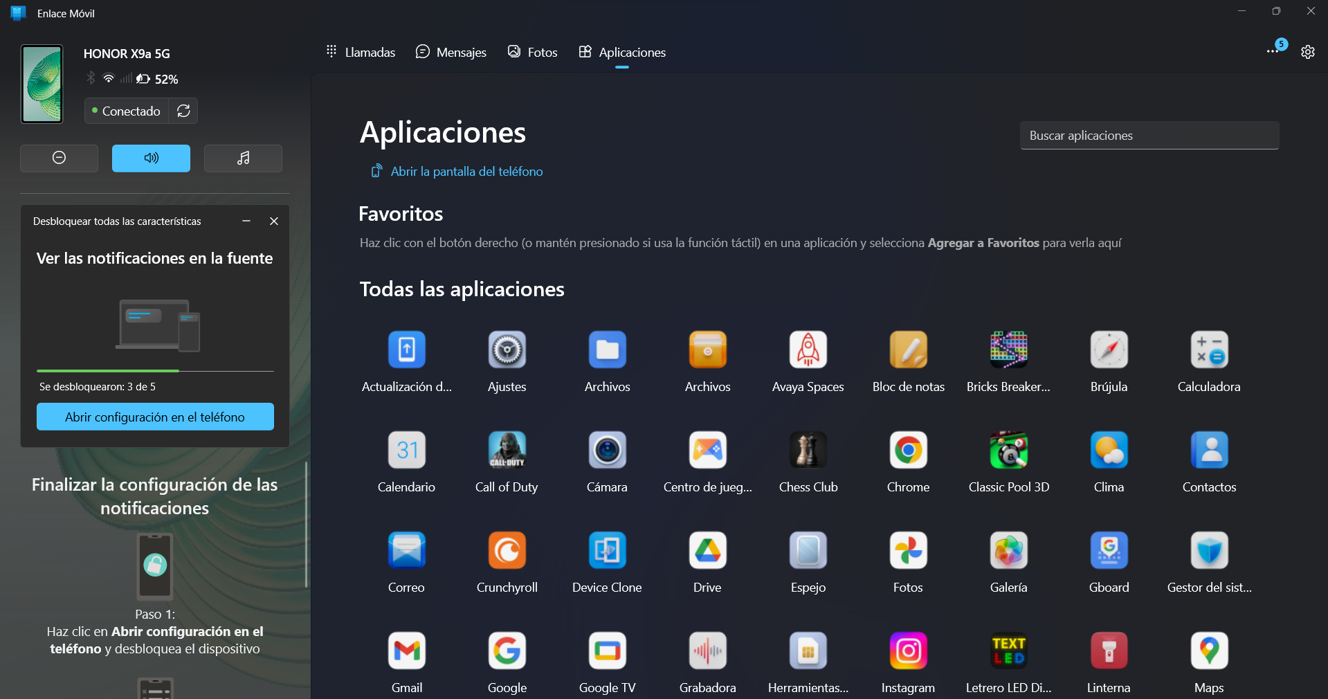 1: Abre Phone Link en tu PC con Windows. (Si no aparece Phone Link en tu equipo tendrás que actualizar la versión de Windows).