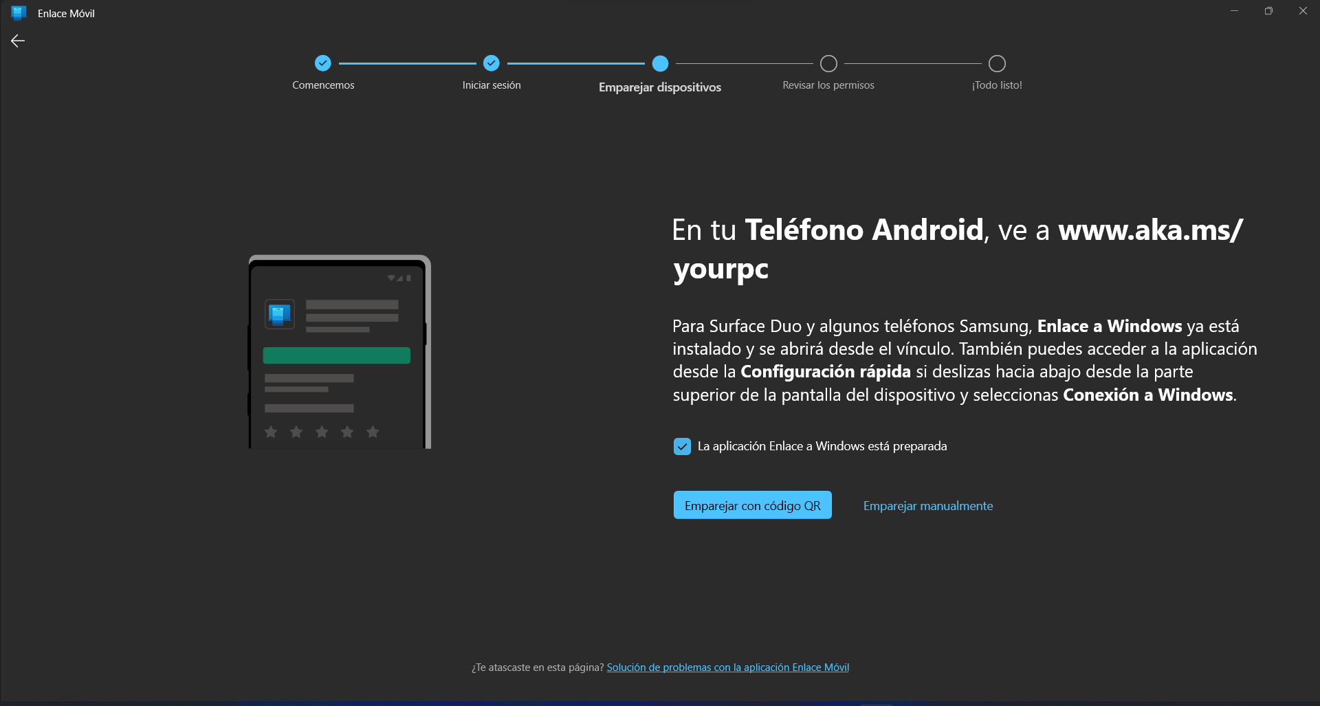 tu smartpone cuenta con enlace a Windows y tu equipo PC Windows