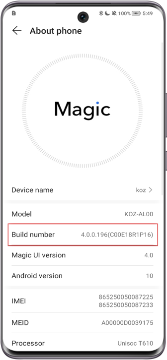 Uživatelské rozhraní Magic UI 4.0 a novější:- Přejděte do nabídky a sedmkrát klepněte na položku Číslo sestavy, čímž zapnete Možnosti pro vývojáře.
