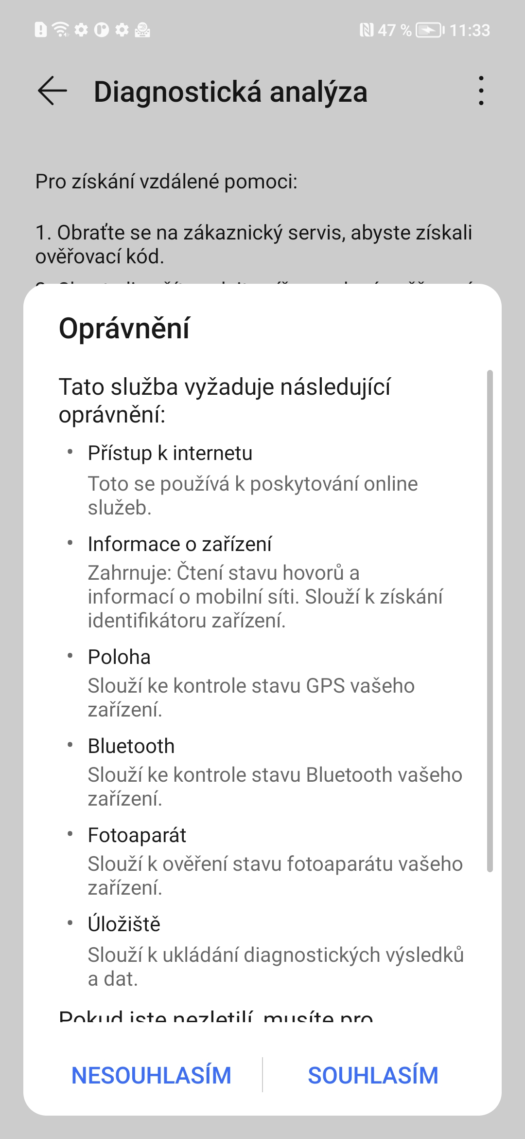 - 2. Vzdálená diagnostika závad vyžaduje, aby bylo Vaše poruchové zařízení normálně zapnuto a připojeno k mobilní síti nebo WIFI.