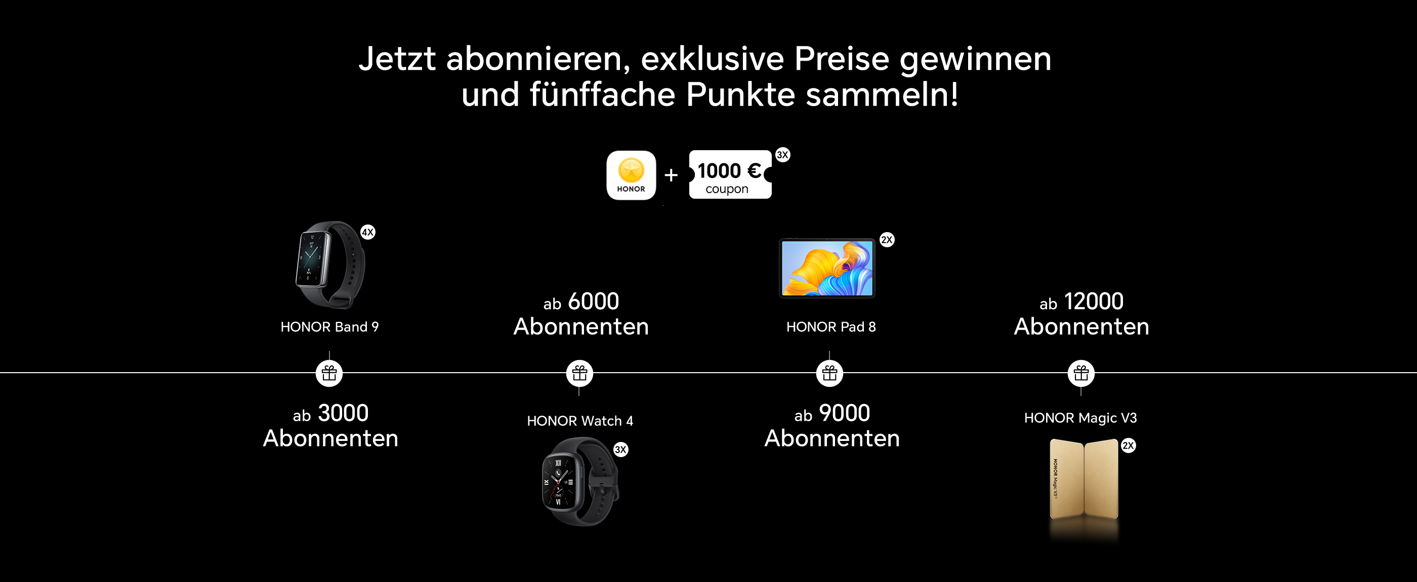 (1) Eine Chance, einen 1000-Euro-Gutschein für den Kauf eines HONOR Magic V3 zu gewinnen.