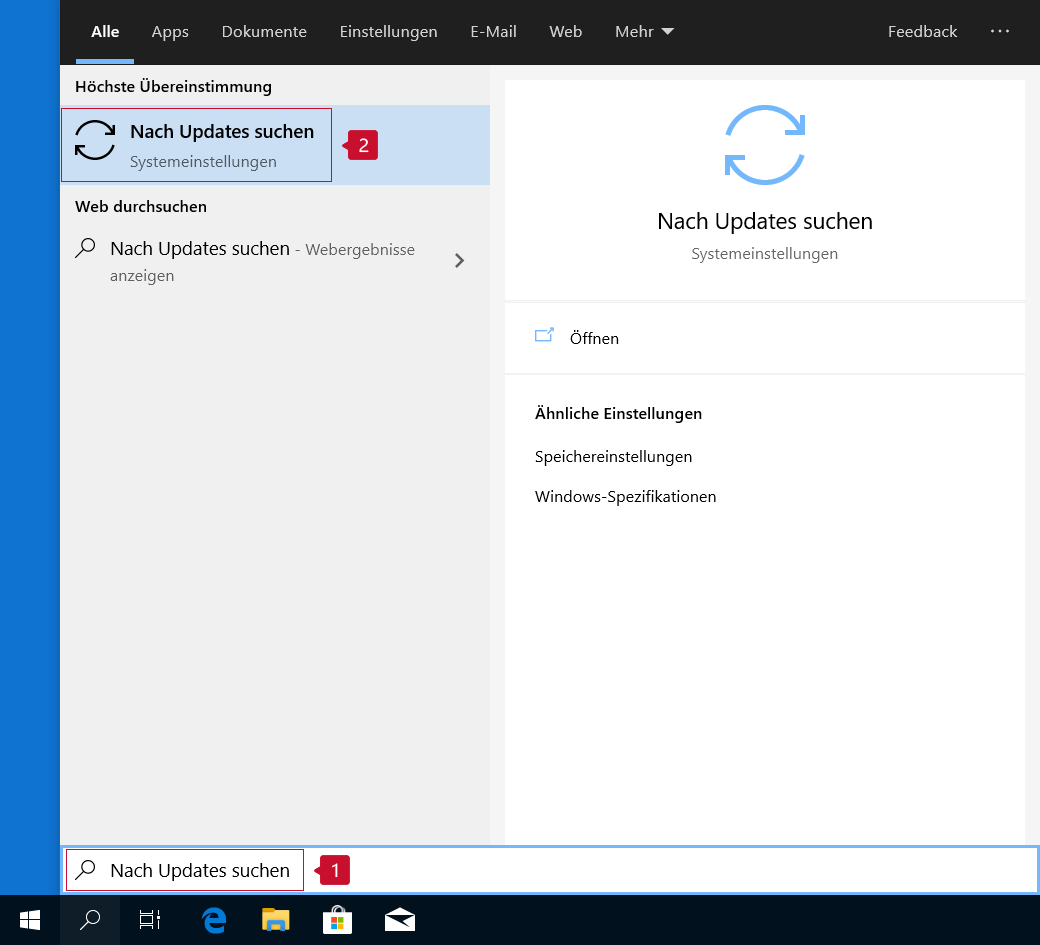 Versuchen Sie, Windows zu aktualisieren, um das BSoD-Problem zu beheben. Suchen Sie in der Taskleiste nach „Aktualisierung“ und klicken Sie auf Windows Update-Einstellungen. Klicken Sie auf Nach Updates suchen.