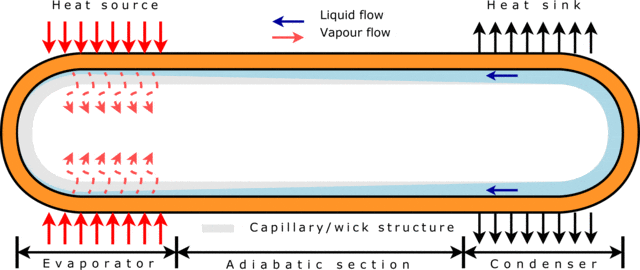 الأكثر أهمية هو أنبوب الحرارة Heat Pipe و يحتوي على السائل (الذي يقوم بدور الناقل الحراري) ويدور حول مكونات توليد الحرارة (عادة ما تكون اللوحة الأم و الشرائح المختلفه) , و في معظم الهواتف الذكية التي يتم تبريدها بالسائل ، يتم استخدام المياه كوسيلة للحفاظ على برودة المعالج.