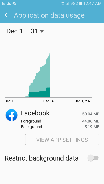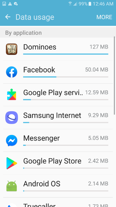 قد لا يكون الهاتف الخاص بك قيد الإستخدام ومع ذلك تستمر بعض التطبيقات في استهلاك باقة الإنترنت لديك من خلال عملها في الخلفية ولكن يمكنك مراقبة تطبيقاتك وتتبع إستهلاك كل تطبيق لبيانات الهاتف وإيقاف عمل التطبيقات التي تلتهم باقة النت لديك من خلال الإنتقال للإعدادت ثم استخدام البيانات Settings >> Data Usage.