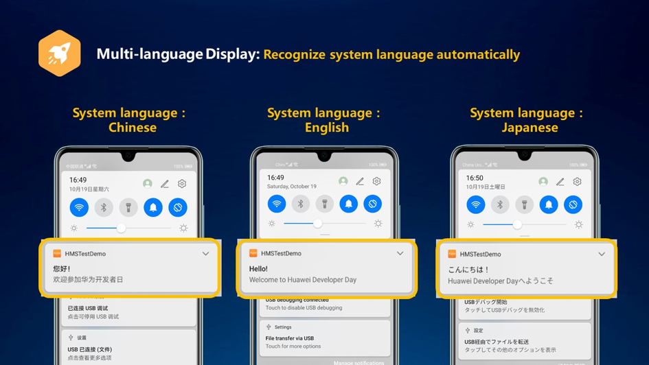 هل تحتاج الرسالة إلى التكيف مع البلدان واللغات المختلفة؟ الوقت الموفر للمطورين هو أن أدوات الدعم تدعم عرض الرسائل متعددة اللغات. يقوم النظام تلقائيًا بقراءة محتوى الحقل المقابل في التطبيق وتحويله إلى إعداد اللغة في نظام المستخدمين ، مما يزيد بشكل كبير من جاذبية المستخدمين.