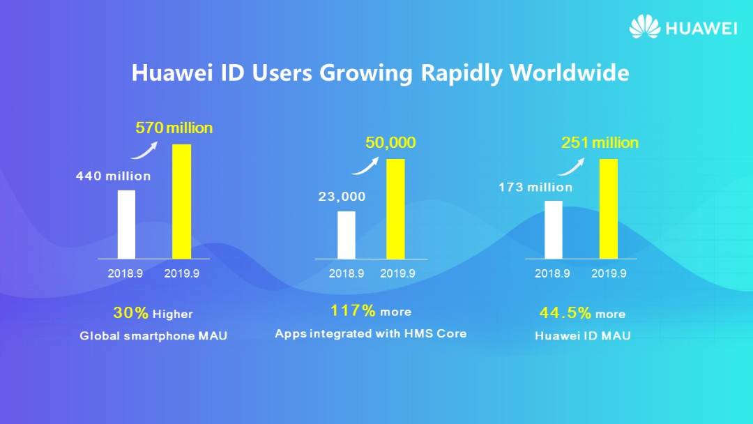 بنهاية الربع الثالث من عام 2019 ، نمت قاعدة مستخدمي الهاتف المحمول إلى أكثر من 570 مليون مستخدم لهواوي حول العالم مع قاعدة مستخدمين نشطة شهرياً لمعرف honor تصل إلى 250 مليون. تغطي منتجات وخدمات honor أكثر من 170 دولة ومنطقة حول العالم وتجاوز عدد التطبيقات التي يمكنها الوصول إلى مجموعة حسابات honor 5،500. توفر قاعدة المستخدمين الكبيرة المتراكمة من منتجات وخدمات honor أساسًا قويًا للمطورين لاكتساب مستخدمين كثيرين بسرعة في جميع أنحاء العالم من خلال دمج مجموعة حسابات honor. تدعم honor جميع المطورين لدمج مجموعة أدوات الحساب لمساعدة المطورين في الوصول إلى السوق العالمية.