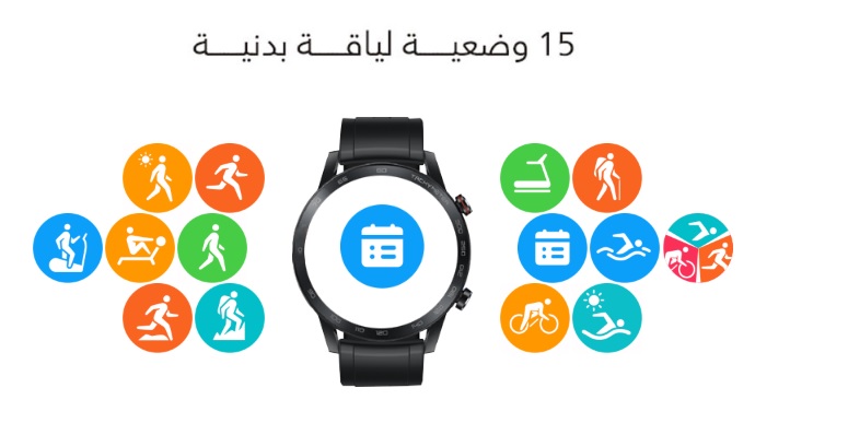 تتميز الساعة الذكية أيضًا بأنها مقاومة للماء ، حيث تأتي مع