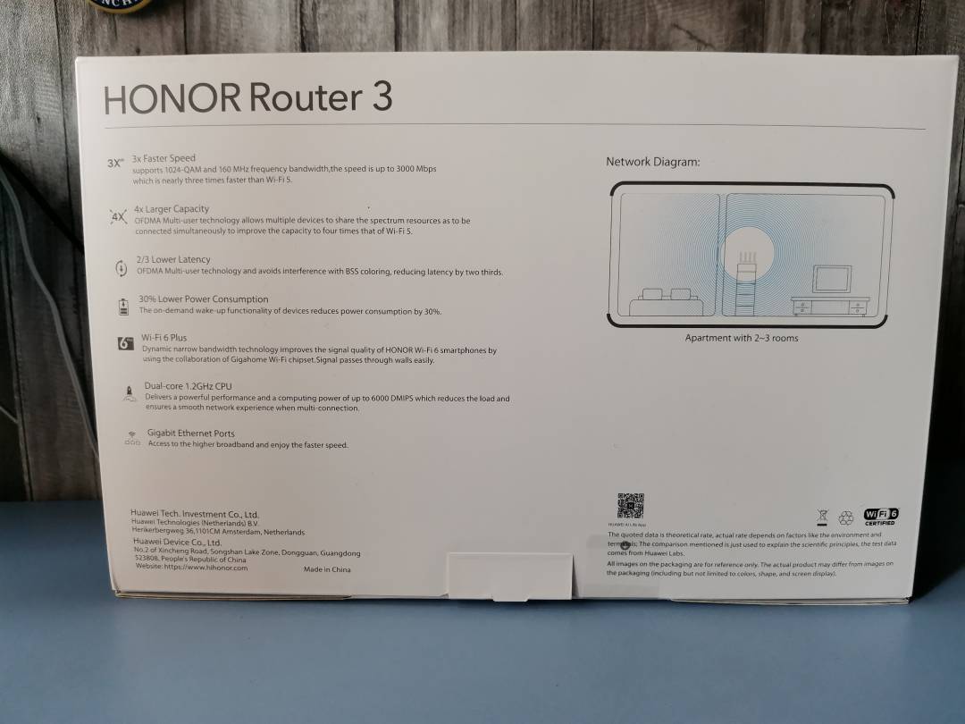 Estos son todos los elementos que contiene la caja, y mis opiniones a primera vista son buenas, ya que por lo que he estado leyendo, sin haberlo puedo en funcionamiento primero es que es un buen router puesto que puede soportar 128 dispositivos conectados simultaneamente, por lo que no tendremos ningun problema si tenemos muchos dispositivos IoT conectados. Lo que también me gusta es que usa el estándar 802.11ax, tambien llamado wifi 6, el cual nos ofrecera una menor latencia y una velocidad mayor. Además tiene una velocidad de * 60% mas rápida en dispositivos honor compatibles con WIFI 5, por lo que en casa como tenemos varios moviles honor nos vendrá de perlas. Otro aspecto que me llama la atención bastante es que podemos hacer gestiones del router con la aplicacion Ai life, esto es muy curioso ya que podemos establecer un control parental, o gestionar que dispositivos hay conectados, asi como controlar el ancho de banda. Este router también tiene WPA 3, protocolo de seguridad con el que estarán mas seguros nuestros datos.