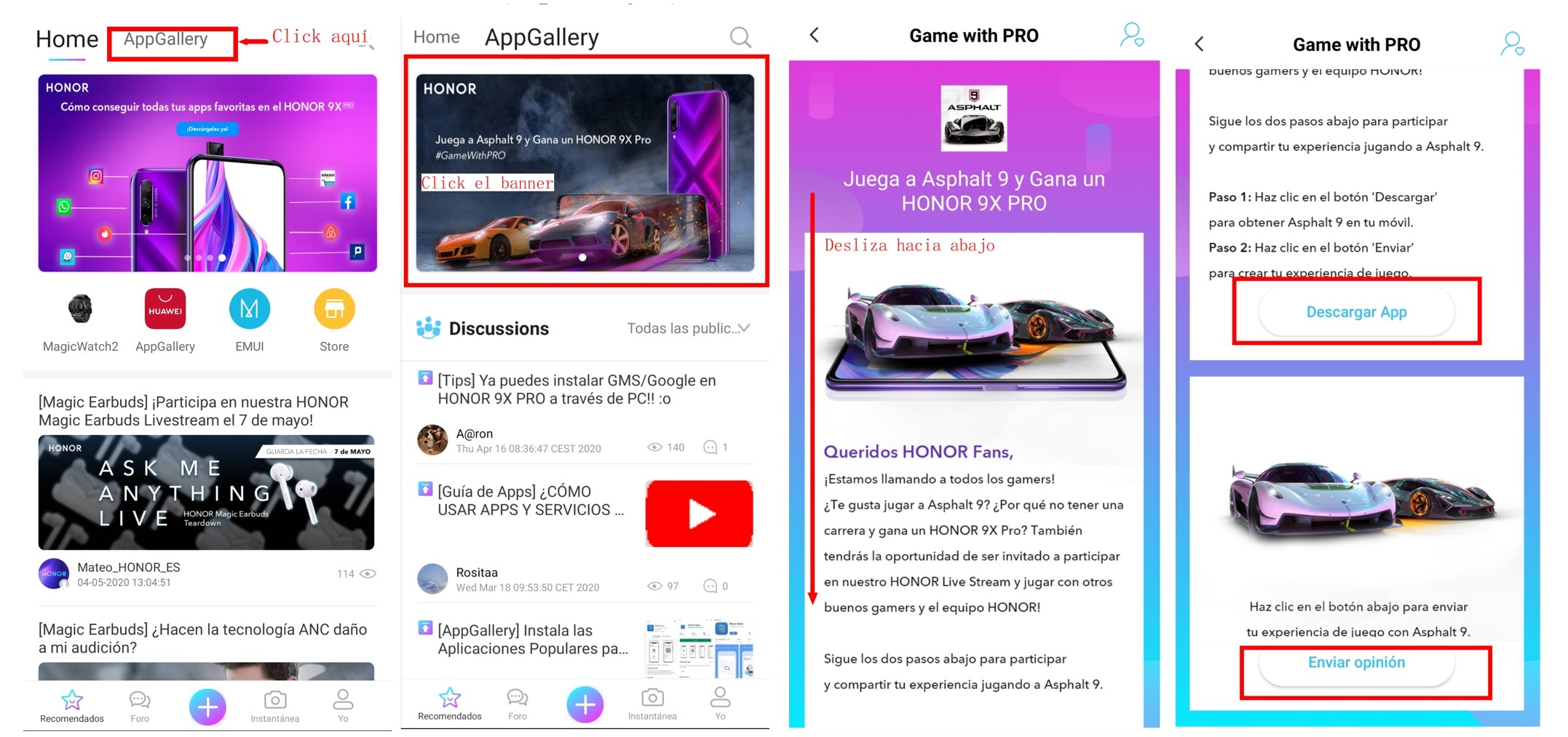 ¡Estamos llamando a todos los gamers! ¿Te gusta jugar a Asphalt 9? ¿Por qué no tener una carrera y ganar un HONOR 9X Pro? También tendrás la oportunidad de ser invitado a participar en nuestra HONOR ** Stream y jugar con otros buenos gamers y el equipo HONOR! Sigue los pasos abajo para participar y compartir tu experiencia jugando a Asphalt 9.