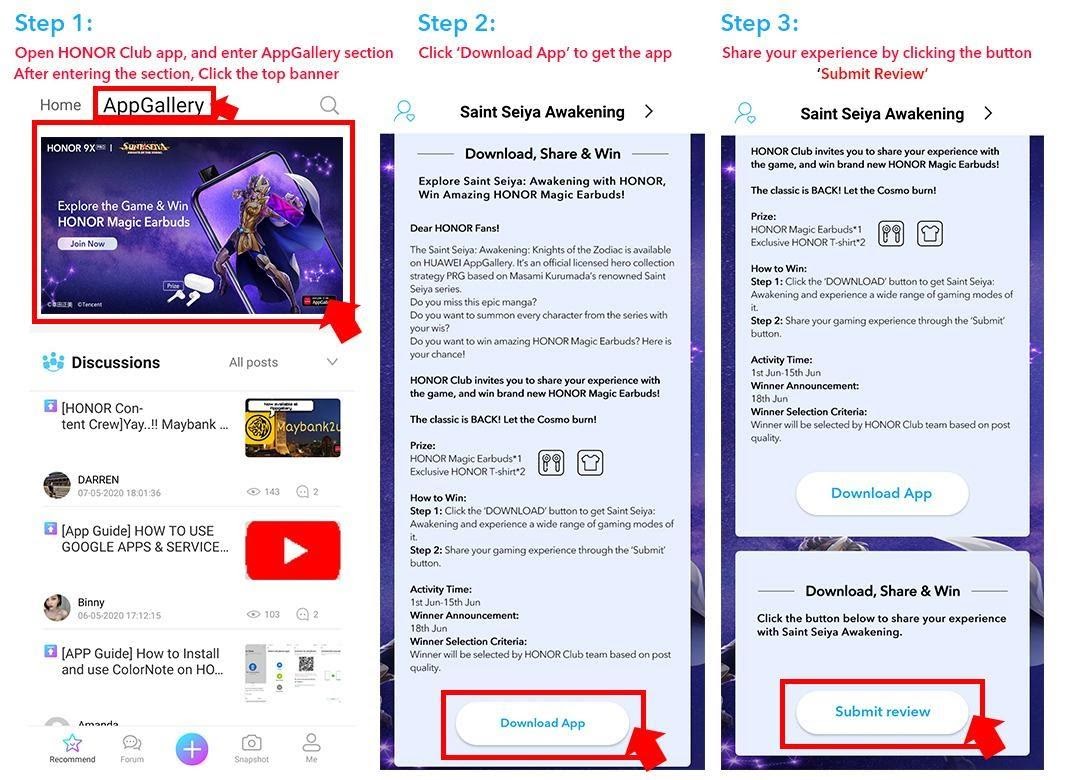 [AppGallery] ¡Explora Saint Seiya: Awakening con HONOR, Gana Magic Earbuds Impresionantes y Cupones!