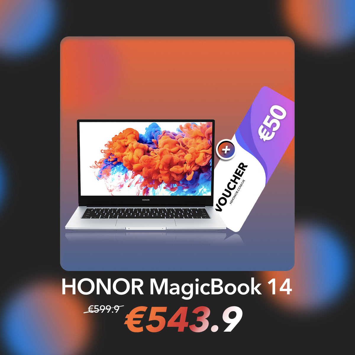 Obtén descuentos adicionales de 1% para registrarte como VIP en Hihonor Store. Finalmente, puedes obtener HONOR MagicBook 14 por €543.9