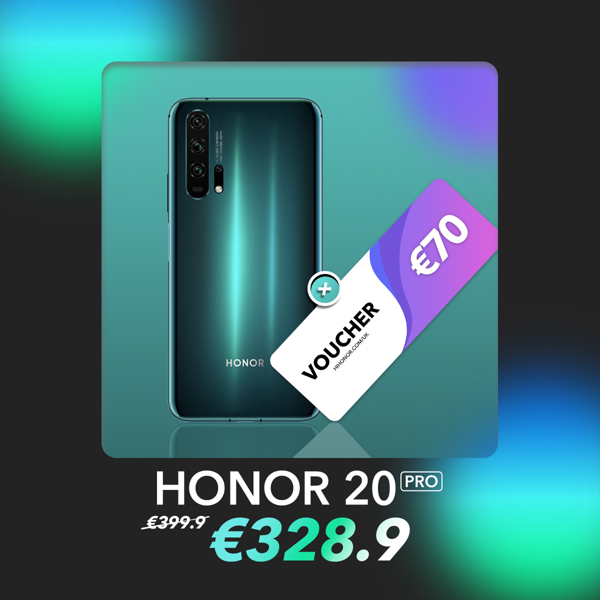 Obtén descuentos adicionales de €1 para registrarte como VIP en Hihonor Store. Finalmente, puedes obtener HONOR 20 PRO por €328.9