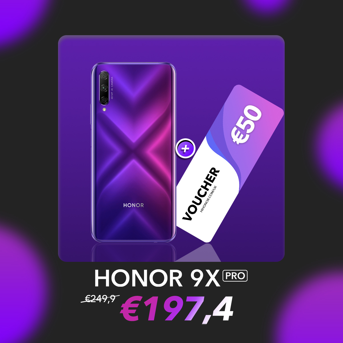 Obtén descuentos adicionales de 1% para registrarte como VIP en Hihonor Store. Finalmente, puedes obtener HONOR 9X PRO por €197.4