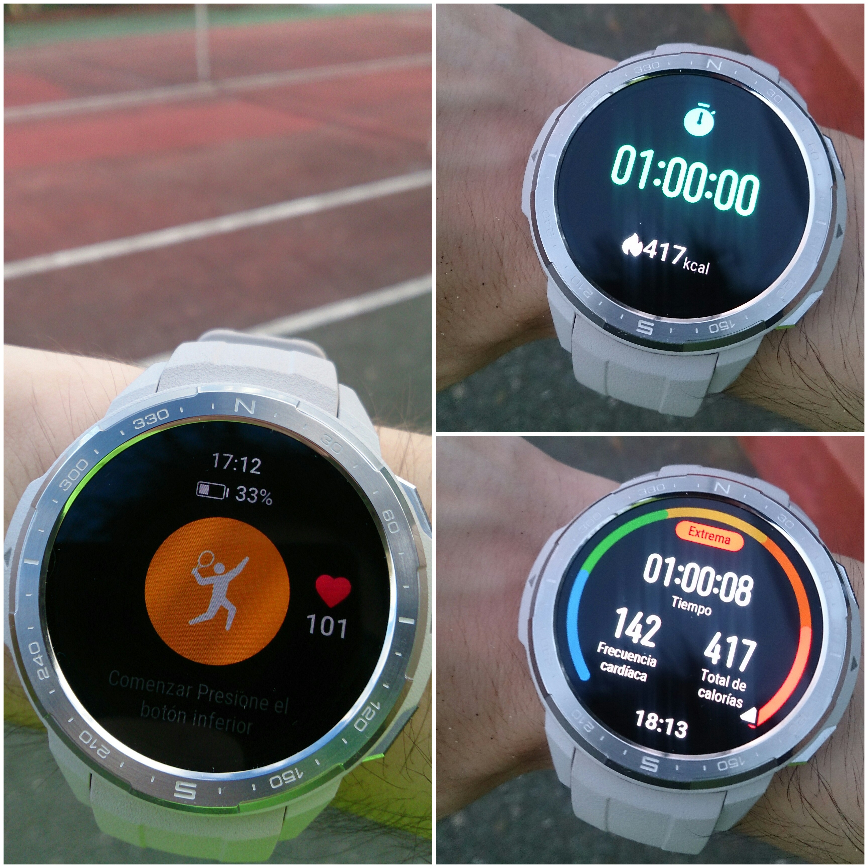 Entre ellos Tenis, que al verlo, me entraron ganas de ponerlo en práctica y a su vez poner a prueba las funciones de este dispositivo, así pues con raqueta en mano y una vez en la pista e iniciado el modo, el Watch te avisa y va informando cada 10 minutos de forma sonora, algo que está bien para controlar el tiempo del partido (y mas si tienes alquilada la pista para que no se te pase la hora