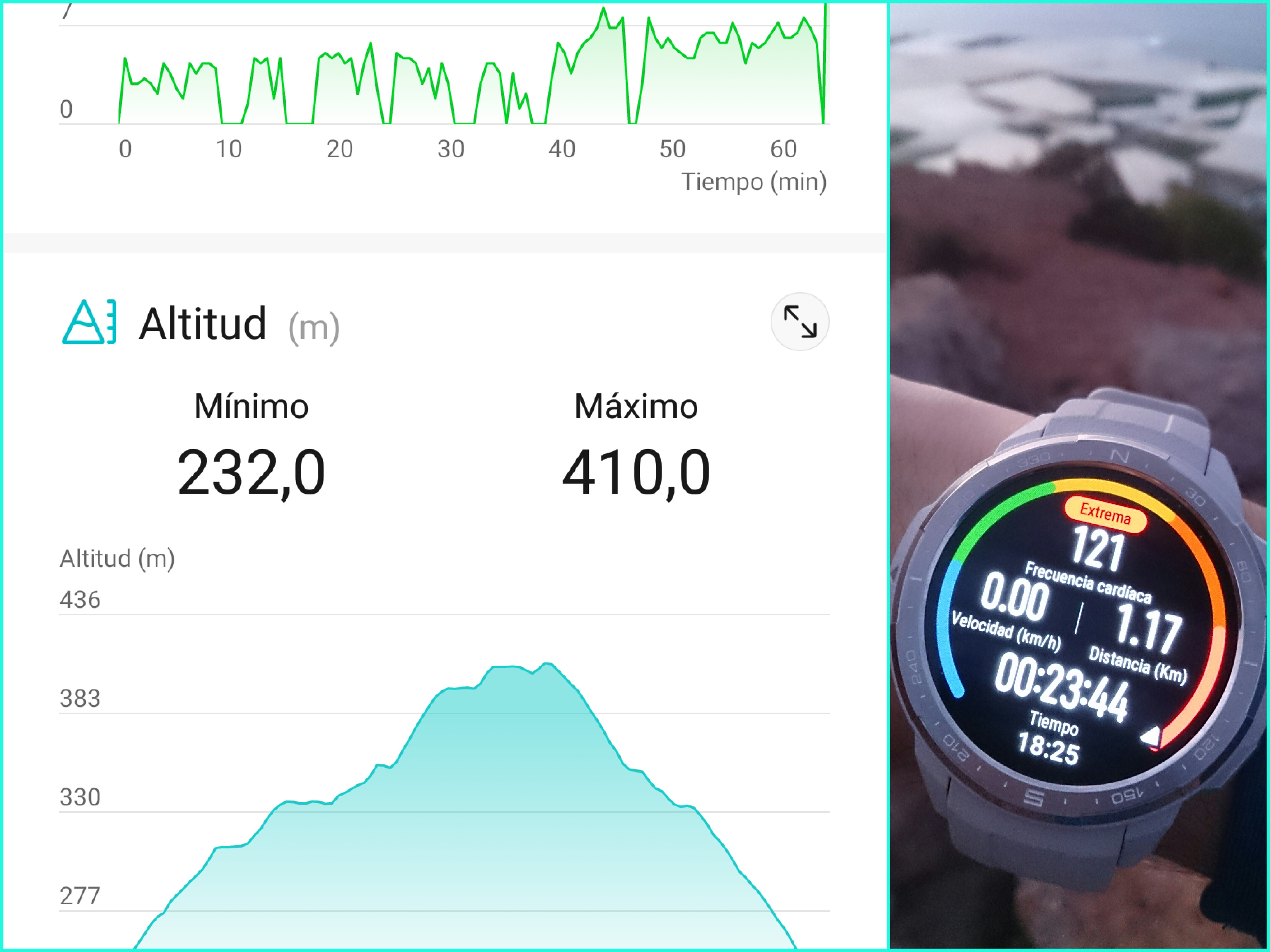 A los pocos días quise probar otro de los modos que tiene este smartwach con una breve ruta por montaña. Para ello active el modo Senderismo en montaña. En este caso divide la ruta en tramos cada 1 km y avisa de forma sonora los kilómetros recorridos, frecuencia cardiaca y otras indicaciones. Hay que mencionar que estos avisos sonoros los hace inglés (cosas que no se si se puede cambiar aunque tampoco es algo que me incomode). Al finalizar la actividad te hace un informe detallado la ruta (distancia, duración, velocidad media, pasos, altitud, frecuencia cardiaca, calorías...). Y desde la app Salud puedes ver el trazado de la ruta por GPS algo que me sorprendió por su exactitud.