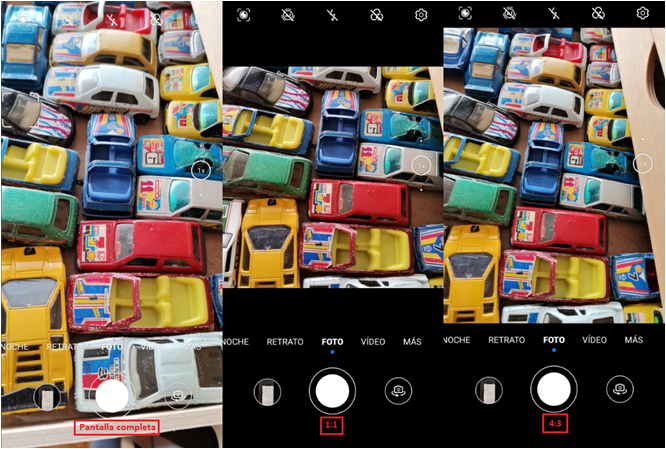 Puedes cambiar la relación de aspecto a través de los ajustes de tu cámara. Vete a Cámara> Ajustes> Resolución y selecciona la relación de aspecto que se ajuste a tus necesidades.