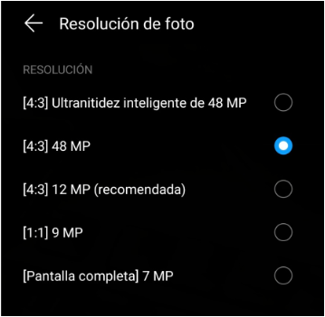 La resolución y la relación de aspecto depende del modelo de teléfono y características de la cámara. La imagen es de referencia y las resoluciones mostradas no son generales para todos los dispositivos..