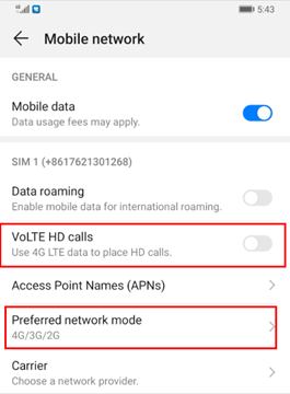 En los teléfonos 5G, no aparece ningún menú de llamadas VoLTE HD después de insertar la tarjeta SIM.