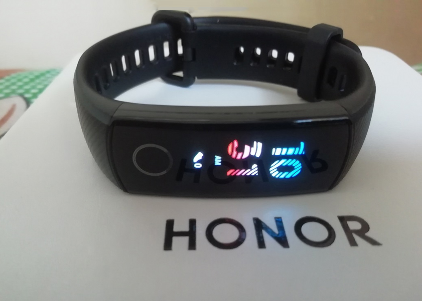 Itse ranneke on silikonia. Näyttö on 0,95 tuuman värillinen AMOLED-kosketusnäyttö.