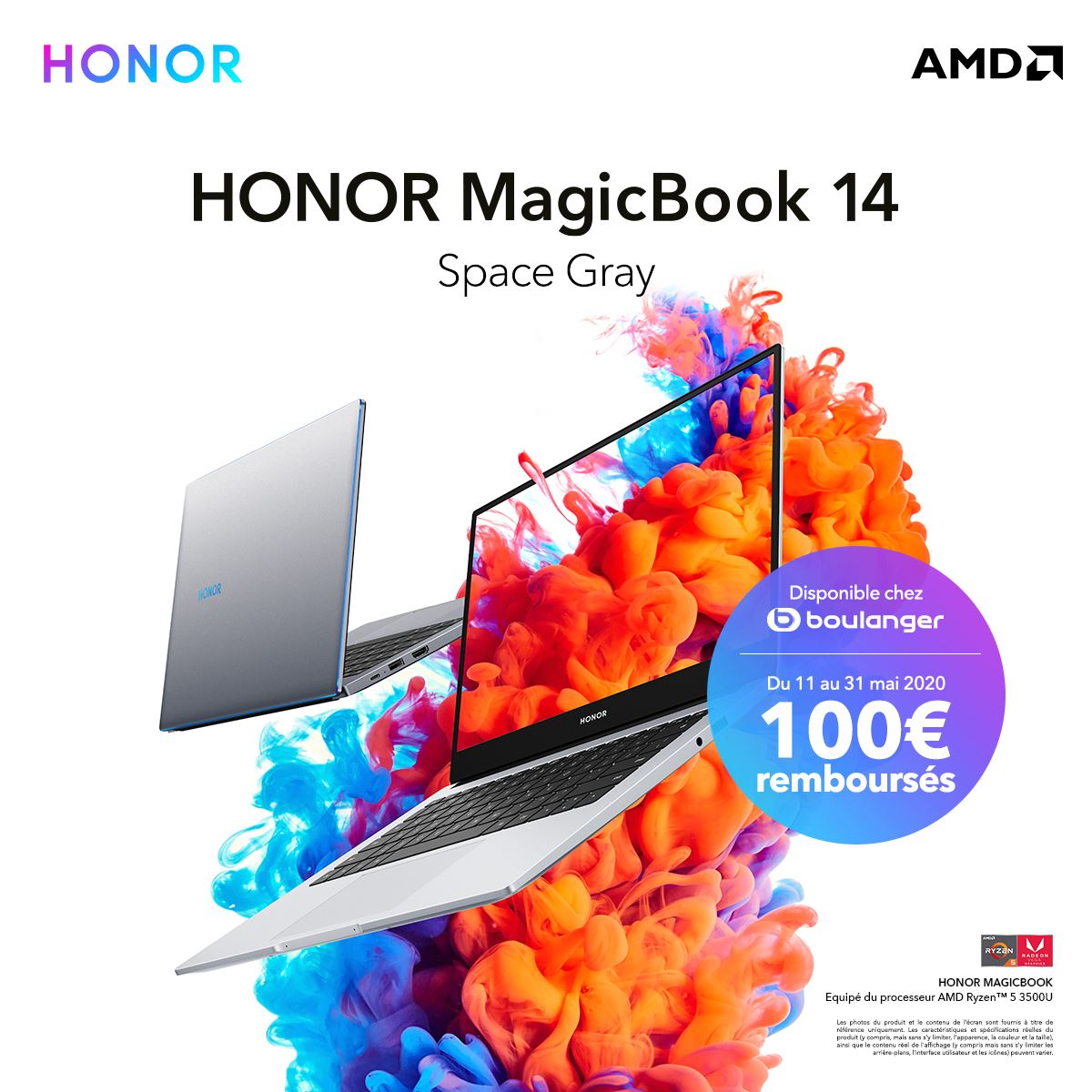 Je viens de voir un super bon plan ! En effet, une Offre de Remboursement est en cours chez Boulanger pour l'achat d'un HONOR MagicBook 14. L'ordinateur est affiché au prix de 599€, mais une fois que vous l'avez acheté il suffit de remplir un formulaire à envoyer pour bénéficier d'un remboursement de 100€. 499€ le HONOR MagicBook, si ca ce n'est pas une bonne offre