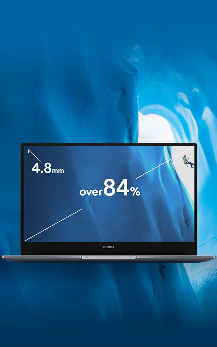 3. Données provenant des laboratoires internes HONOR. Les mesures réelles sont susceptibles de varier en fonction de la méthode de calcul utilisée. Reportez-vous au produit réel. 4,8 mm fait référence au bord supérieur, au bord gauche et au bord droit.