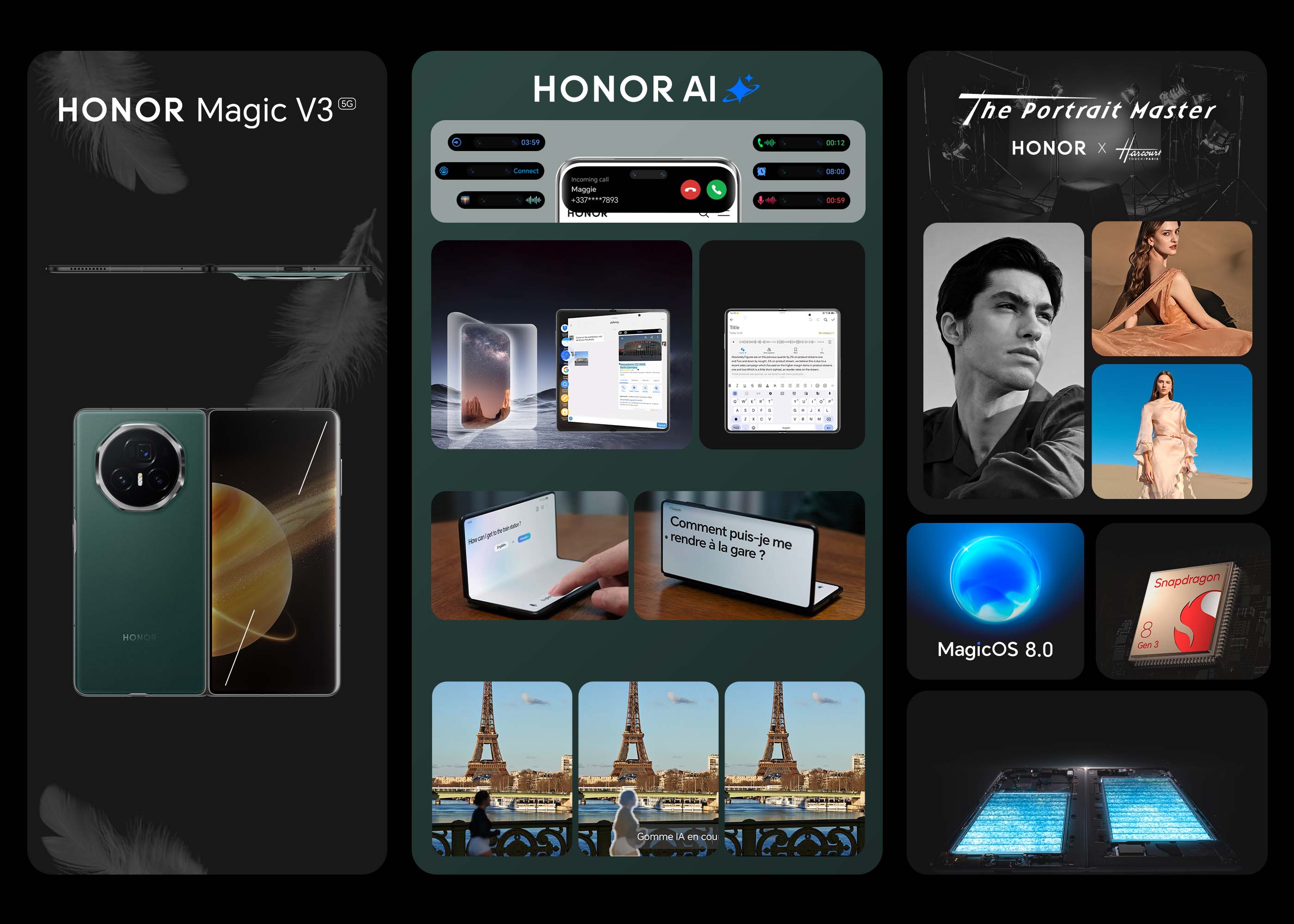 4- Les utilisateurs doivent réaliser un portrait avec le HONOR Magic V3. Ils doivent utiliser l'un des trois modes Harcourt (Vibrant, Couleur, Classique) lors de la prise de photos. Le filigrane HONOR X Harcourt doit être ajouté à la photo finale. Cliquez ici pour voir la vidéo explicative.