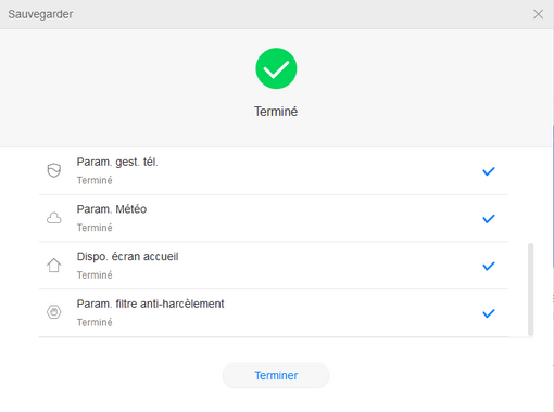3.Une fois la sauvegarde terminée, cliquez sur Terminé.