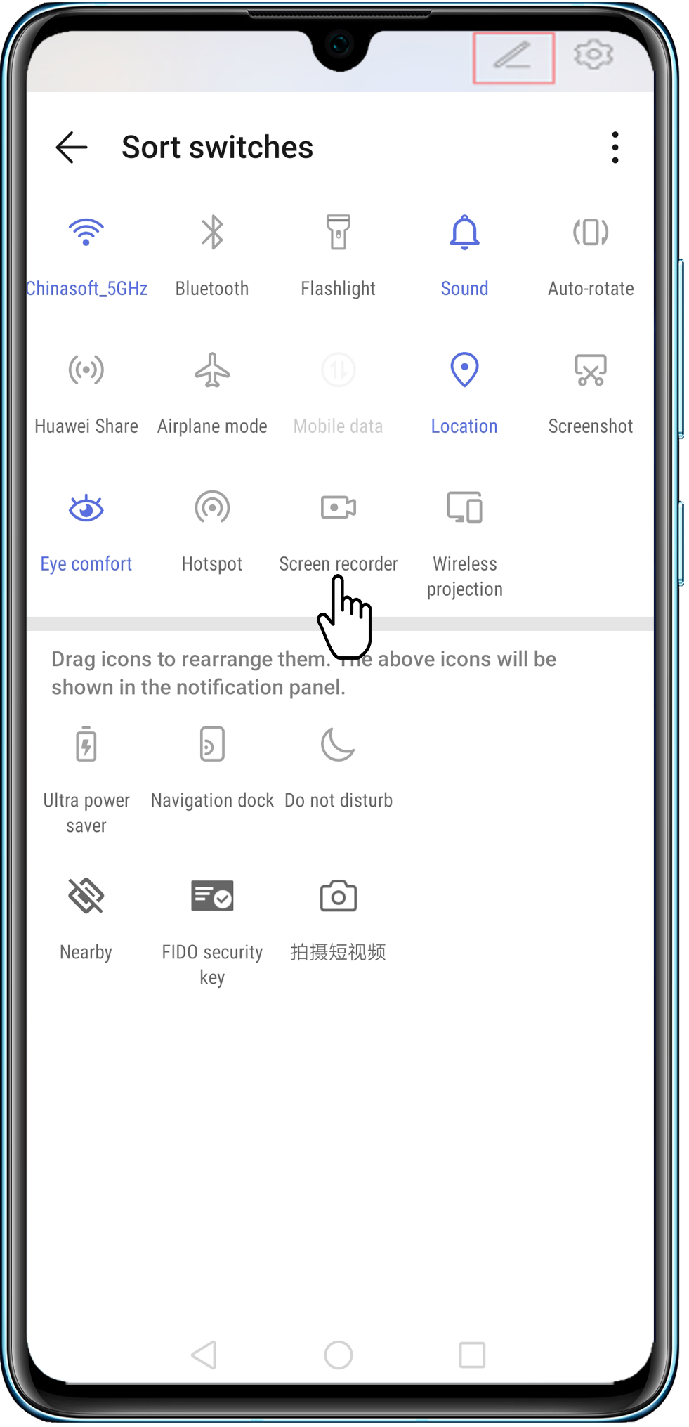 pour rechercher l'icône Capture vidéo d'écran. Touchez l'icône pour utiliser la fonctionnalité de capture vidéo d'écran.