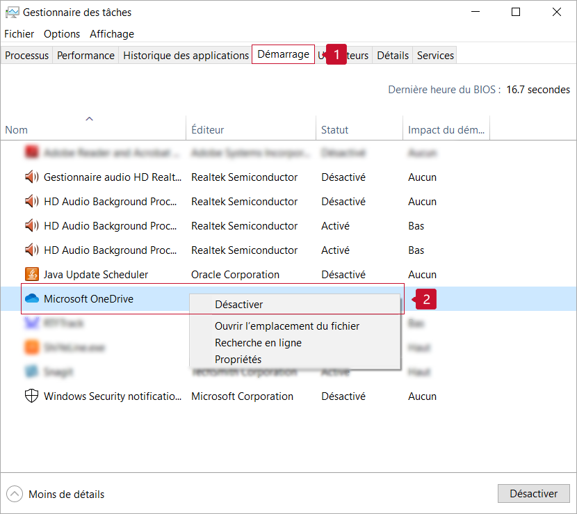 Lors de l'installation de certains logiciels, l'ordinateur télécharge automatiquement certains logiciels fournis qui démarrent automatiquement lorsque l'ordinateur est allumé. En conséquence, cela occupe une grande quantité de RAM et peut conduire à un BSoD. Pour éviter ce problème, ne téléchargez pas de logiciels fournis associés à d'autres logiciels ou vous pouvez ouvrir le Gestionnaire des tâches et accéder à l'onglet Démarrage pour désactiver les logiciels inutiles au démarrage.