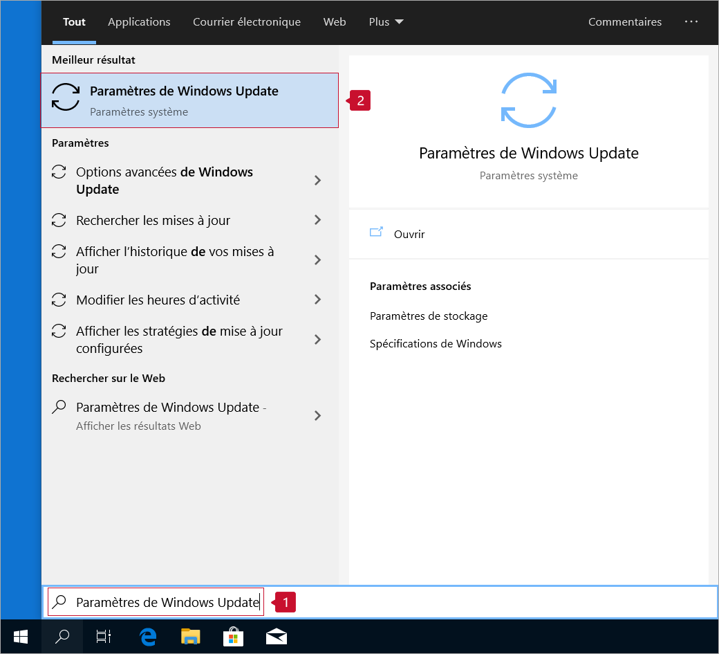 Essayez de mettre à jour Windows pour résoudre le problème de BSoD. Dans la barre des tâches, recherchez « mise à jour » et cliquez sur Paramètres de mise à jour Windows. Cliquez sur Rechercher les mises à jour.