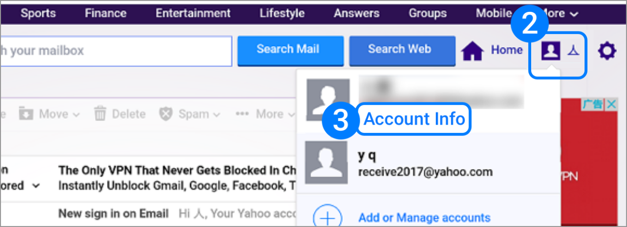 - Connectez-vous à Yahoo Mail à l'adresse https://login.yahoo.com/sur un ordinateur.