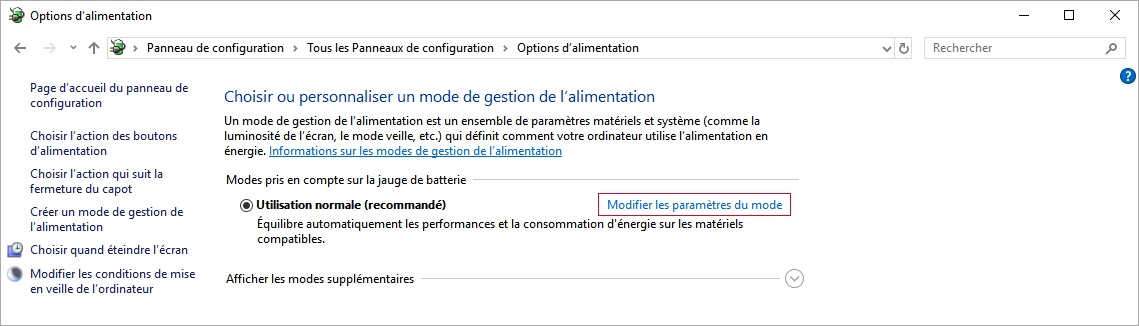 4. Cliquez sur Modifier les paramètres d'alimentation avancés.