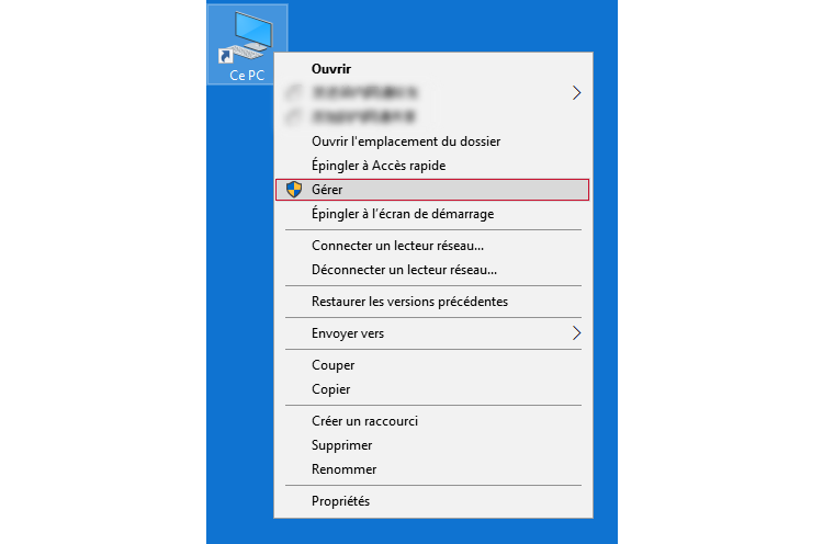 1. Cliquez avec le bouton droit sur PC et choisissez Gérer.