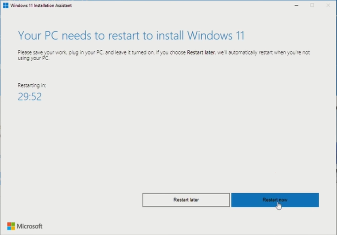 - The installation assistant will automatically download Windows 11. After the progress reaches 100%, you can manually click Restart now to start installing Windows 11.