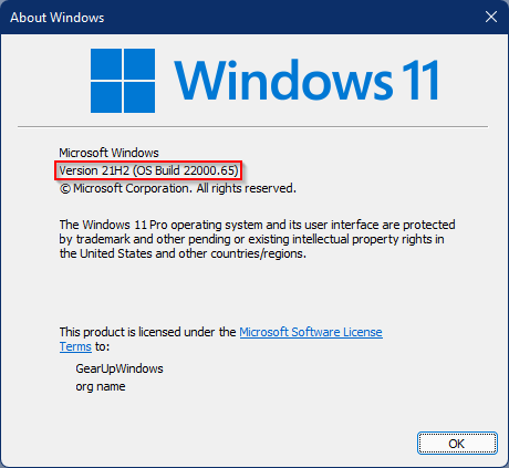 Procedure: Press Win + R, type winver, and press Enter. If the version is 22000.xxx, the upgrade is successful.