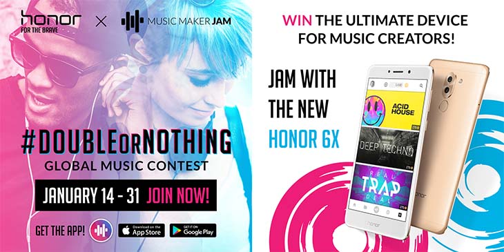 Happy to finally announce our partnership with Music Maker JAM for the upcoming contest DoubleOrNothing! Best song wins the brand new HONOR 6X!