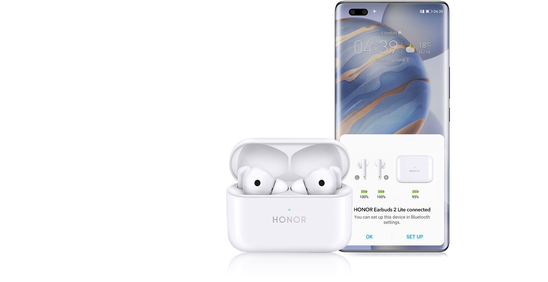 - تتطلب ميزة الإقران التلقائي من خلال نافذة منبثقة هواتف ذكية أو أجهزة لوحية من HONOR تعمل بنظام Magic UI 4.0 أو إصدار أحدث. تدعم الأجهزة الأخرى الاقران التقليدي بالبلوتوث. تتطلب هذه الميزة ترقيات OTA للهاتف المحمول.