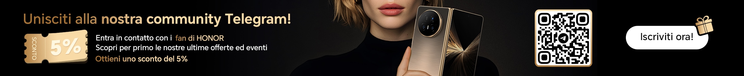 Accetto di ricevere le ultime offerte e informazioni sui prodotti, gli eventi e i servizi Honor su piattaforme terze (Facebook, Google). Posso revocare il mio consenso in qualsiasi momento come indicato nell'Informativa sulla privacy.