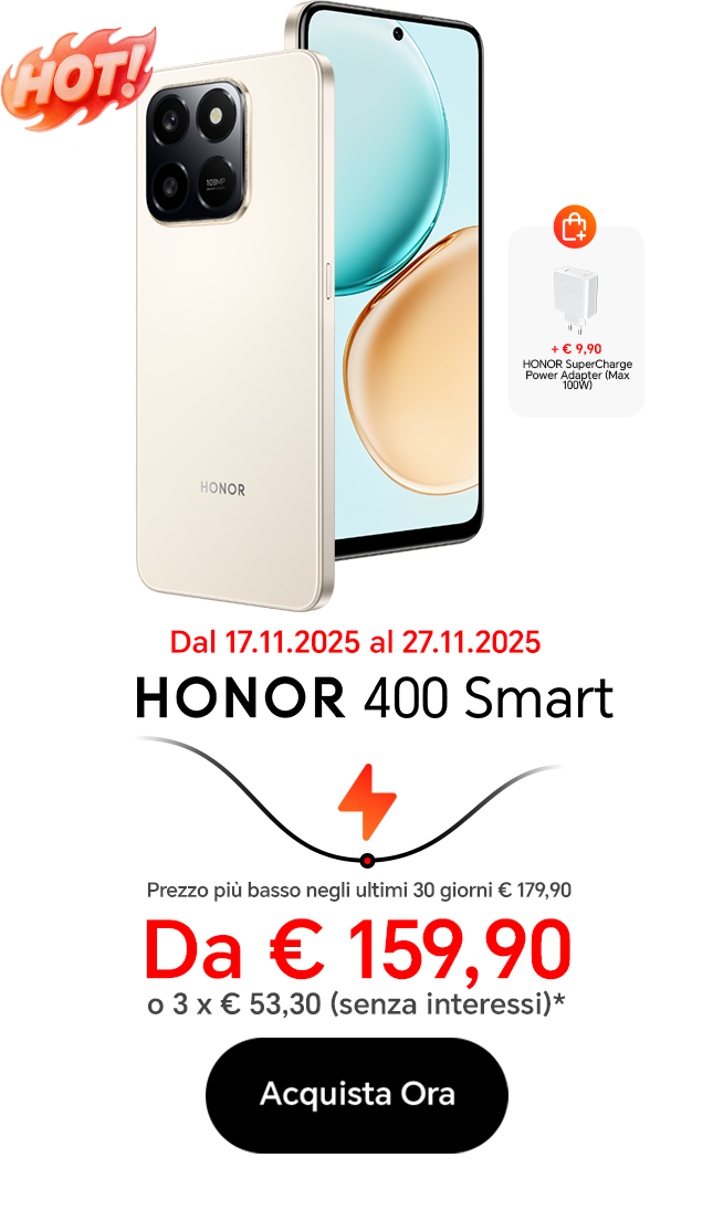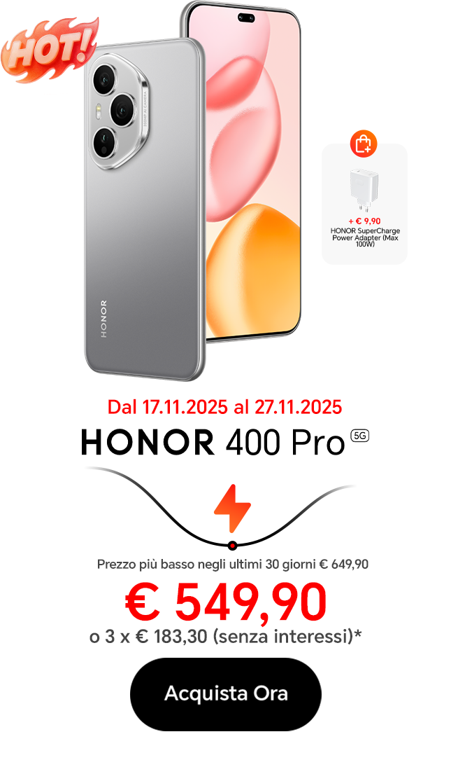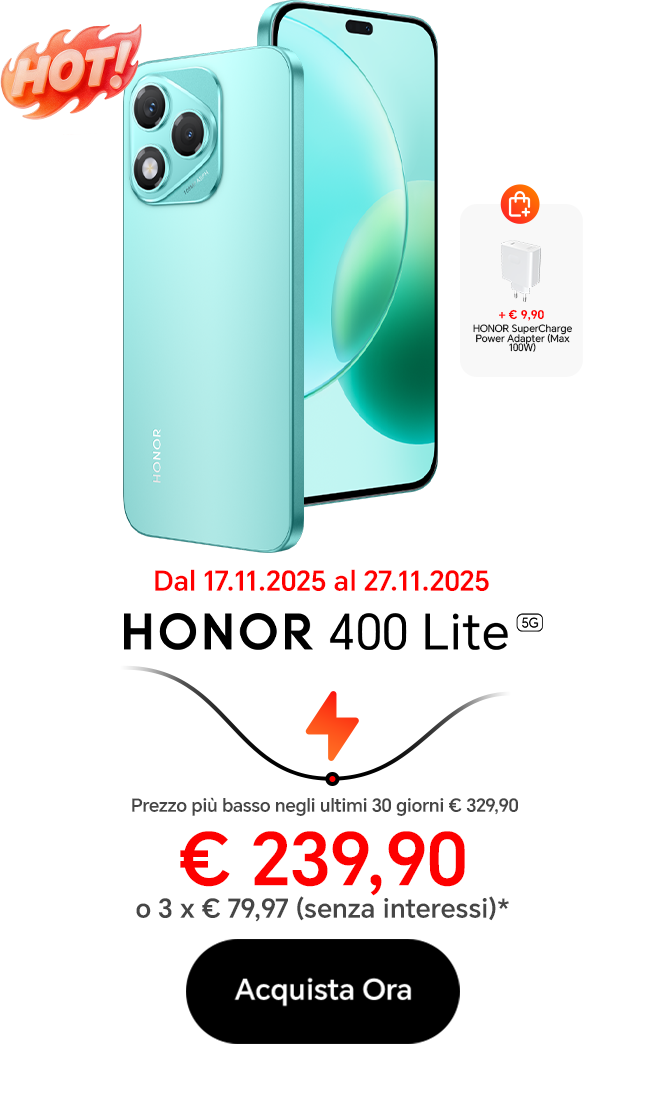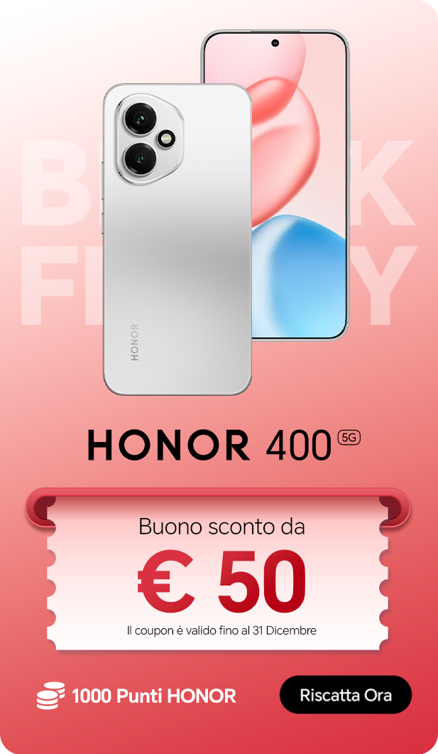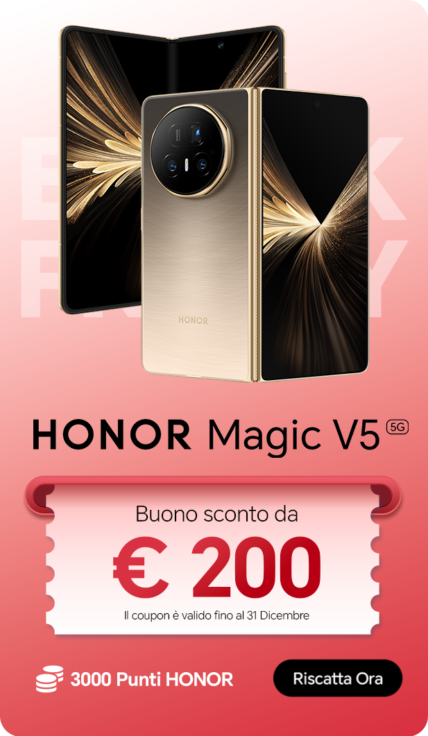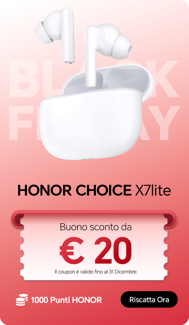 Accetto di ricevere le ultime offerte e informazioni sui prodotti, gli eventi e i servizi Honor su piattaforme terze (Facebook, Google). Posso revocare il mio consenso in qualsiasi momento come indicato nell'Informativa sulla privacy.