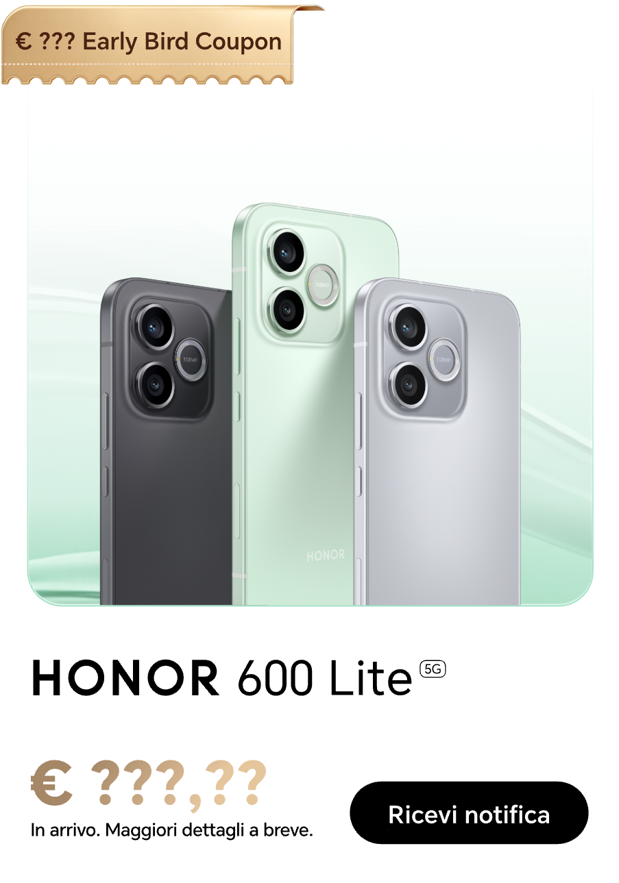 Accetto di ricevere le ultime offerte e informazioni sui prodotti, gli eventi e i servizi Honor su piattaforme terze (Facebook, Google). Posso revocare il mio consenso in qualsiasi momento come indicato nell'Informativa sulla privacy.