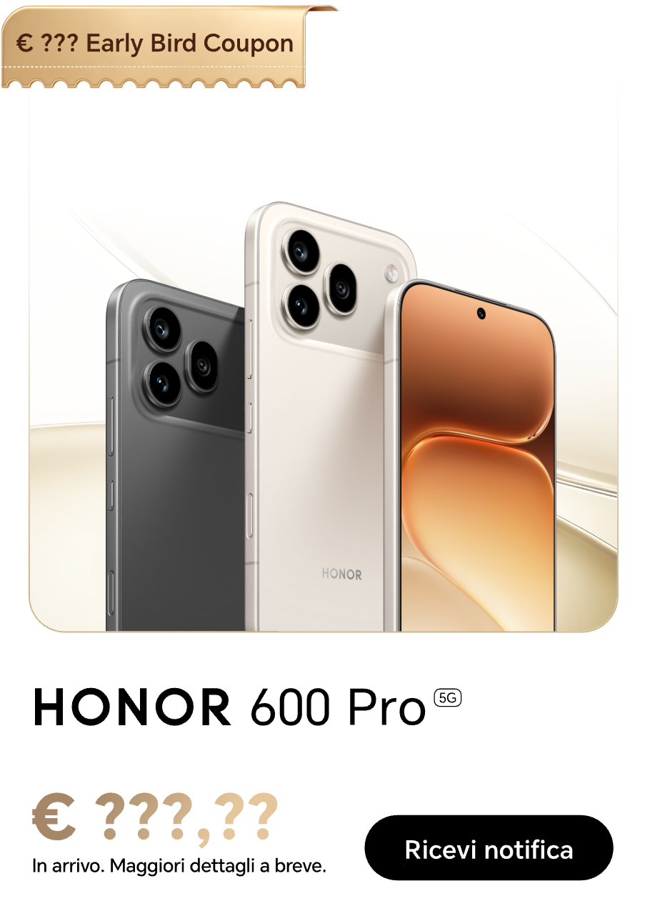 Ricevere le ultime notizie HONOR tramite e-mail, incluse promozioni, eventi, lanci di prodotti, Puoi annullare l'iscrizione in qualsiasi momento. Per maggiori dettagli, si prega di controllare la Informativa sulla privacy della piattaforma e-commerce HONOR.