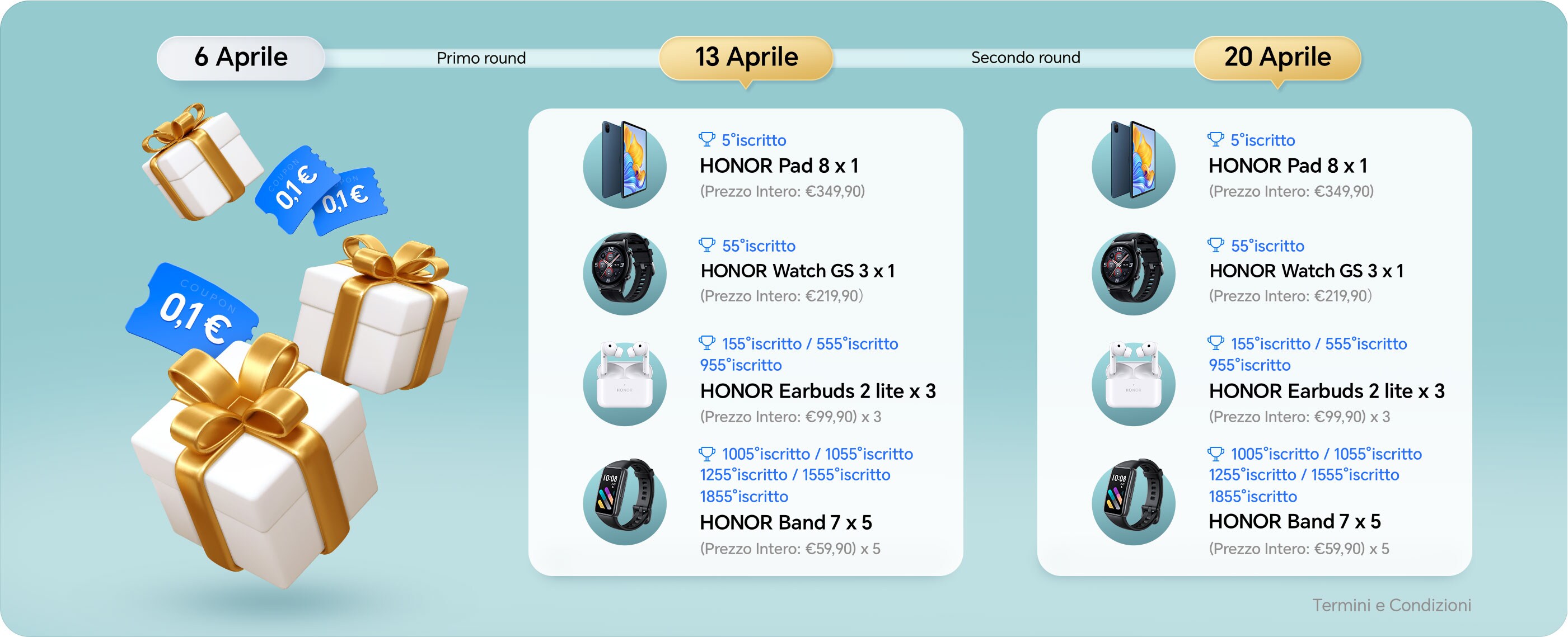 Accetto di ricevere le ultime offerte e informazioni sui prodotti, gli eventi e i servizi Honor su piattaforme terze (Facebook, Google). Posso revocare il mio consenso in qualsiasi momento come indicato nell'Informativa sulla privacy.