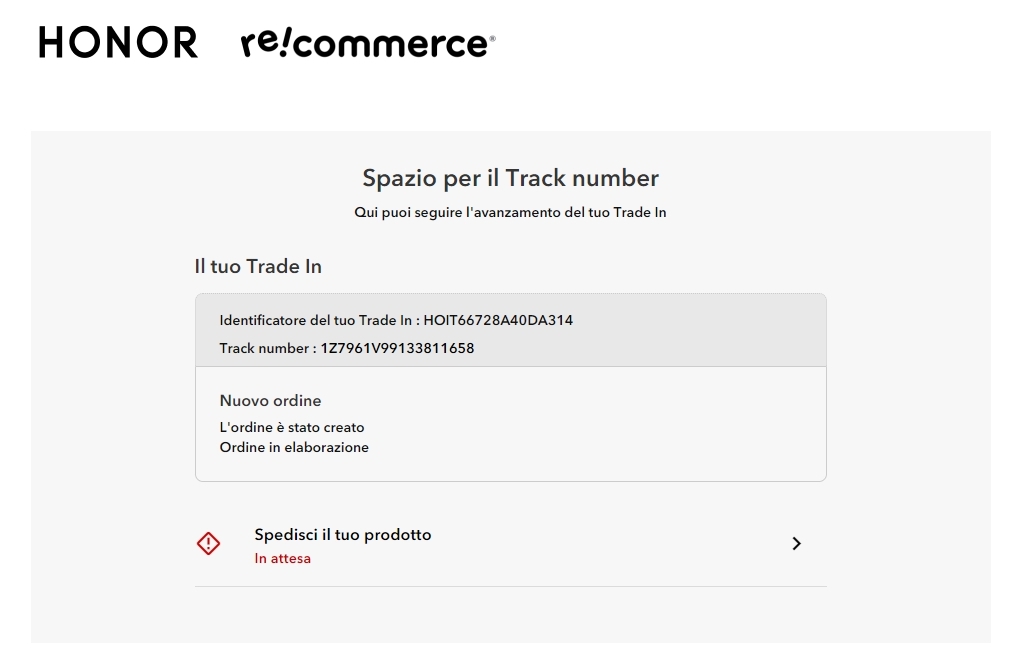 Il cliente può utilizzare direttamente i coupon di permuta e attendere che il recommerce valuti l'importo concordato per il suo vecchio dispositivo.