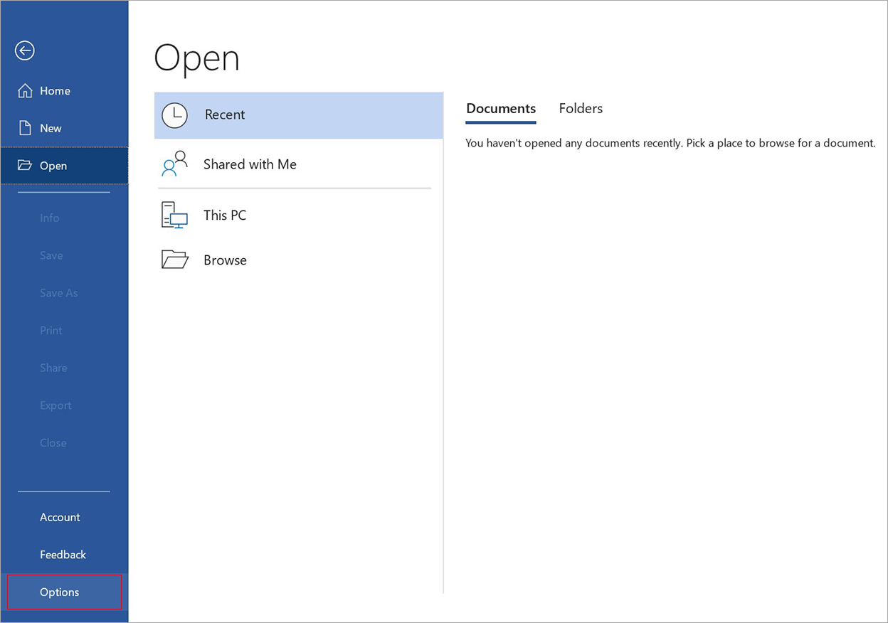 1. Apri Word e vai in File > Opzioni > Componenti aggiuntivi.