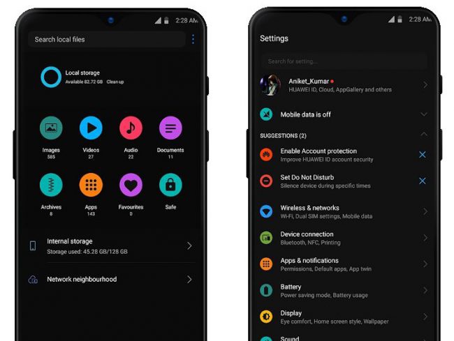 Sabemos que hay unas empresas que estan lanzando móviles con 5 cámaras, otros que quieren agregar aún más, pero aún así tengas 20 cámaras en tu dispositivo y el último procesador del mercado, pero no tienes Modo Oscuro, la felicidad no será completa. En los últimos tiempos, muchas apps y capas de personalización están optando por ofrecer esta opción, vuelve de color negro toda la interfaz del sistema, con el consiguiente ahorro de batería. Mientras Android prepara un Modo Oscuro nativo, el ingenio de muchos se abre paso. Ahora todos los usuarios de EMUI podrán instalar su propio modo oscuro gracias a una nueva app gratuita.